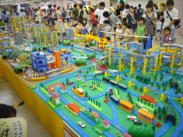 トミカ博なのに、みんな集まるのはプラレールかよ! というつっこみもあるが、いちおう今年発売の新しい「トミカタウン」シリーズが、プラレールの高架下商店などが作れる、ということで。