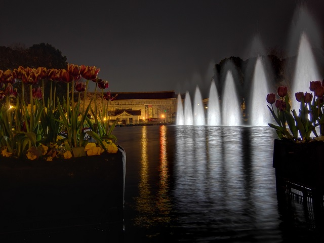 さぁ、暗いしもう帰ろうか…と駅に向かう最中、大噴水が動いているのを発見。