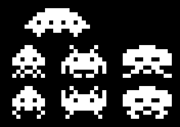 でも、インベーダーは左右にしか動かないのだから、左右の余白を大きくしておけば、新しく「描く」時に、以前のものも消してくれる。