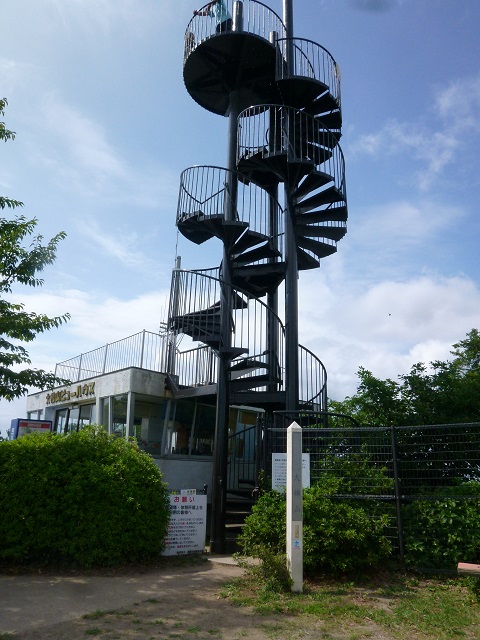 展望台に上ってみる。3本の柱にまとわりつくような、不思議ならせん階段。