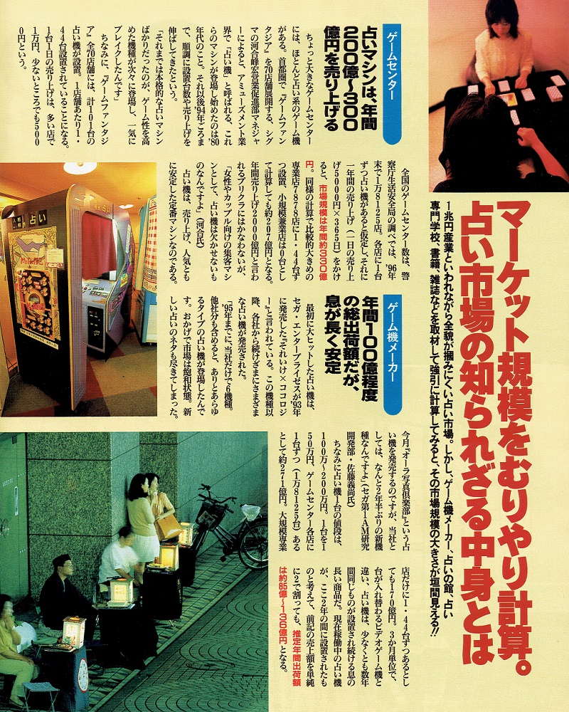 当時は占いブームで、占いゲーム機も人気があったのだ。