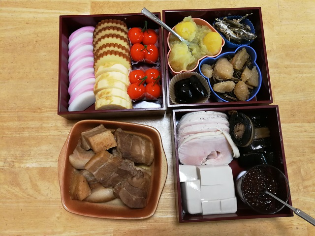写真にあるおせち料理も、今年はいつもほど凝っていない。