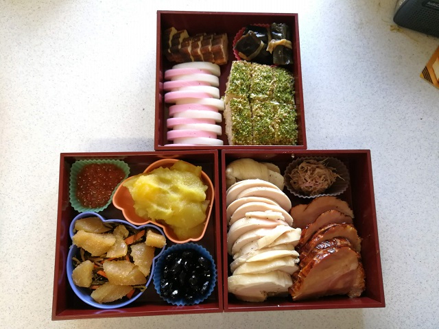 パストラミはさすがにおせち料理らしくない気がして、このお重には入っていない。
